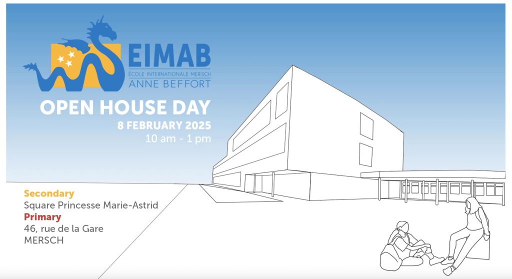 The Anne Beffort International School of Mersch (EIMAB) will be holding its Open Day on Saturday 8 February 2025 from 10am to 1pm, a unique opportunity to discover its dynamic school environment and programme tailored to the needs of international families.